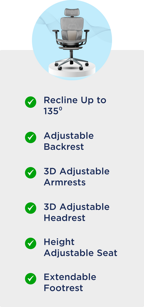 Ultron Premium Ergonomic Office Chair. Footrest is ultra comfortable. Smart backrest comes to the rescue when my wife and I interchange - whole backrest can be moved up & down